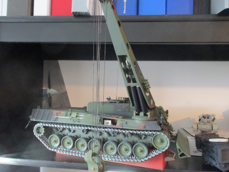 Auf Basis eines Tamiya Leo1 Fahrwerkes entstand das Modell im Maßstab 1zu 16. Es besteht aus Fräs- und Druckteilen. Die Steuerung übernimmt ein SGS FO Modul. Antrieb AFV, Bewegung Räumschild AFV (Büffel), Kran drehen AFV (Büffel)